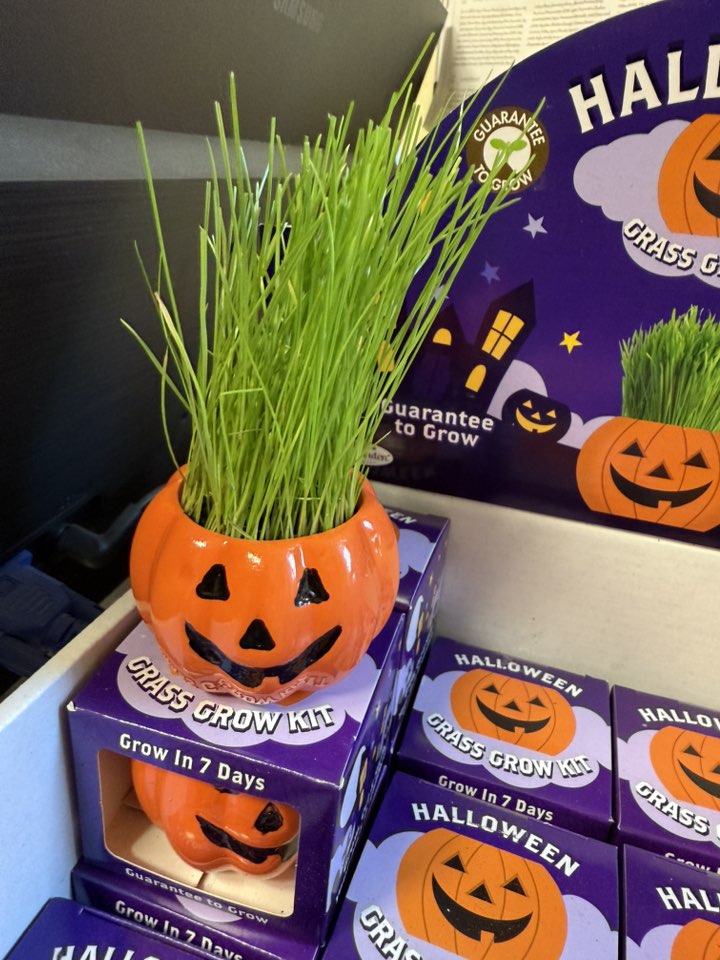 These have been a huge hit and only £2 which all goes to charity for these grass hair growing pumpkins. Contains pumpkin pot, soil and grass seed. In 7 days you’ll see a few strands coming through then within another couple of weeks a full head of grass. All you need to do is feed a little water and follow the instructions in the box.