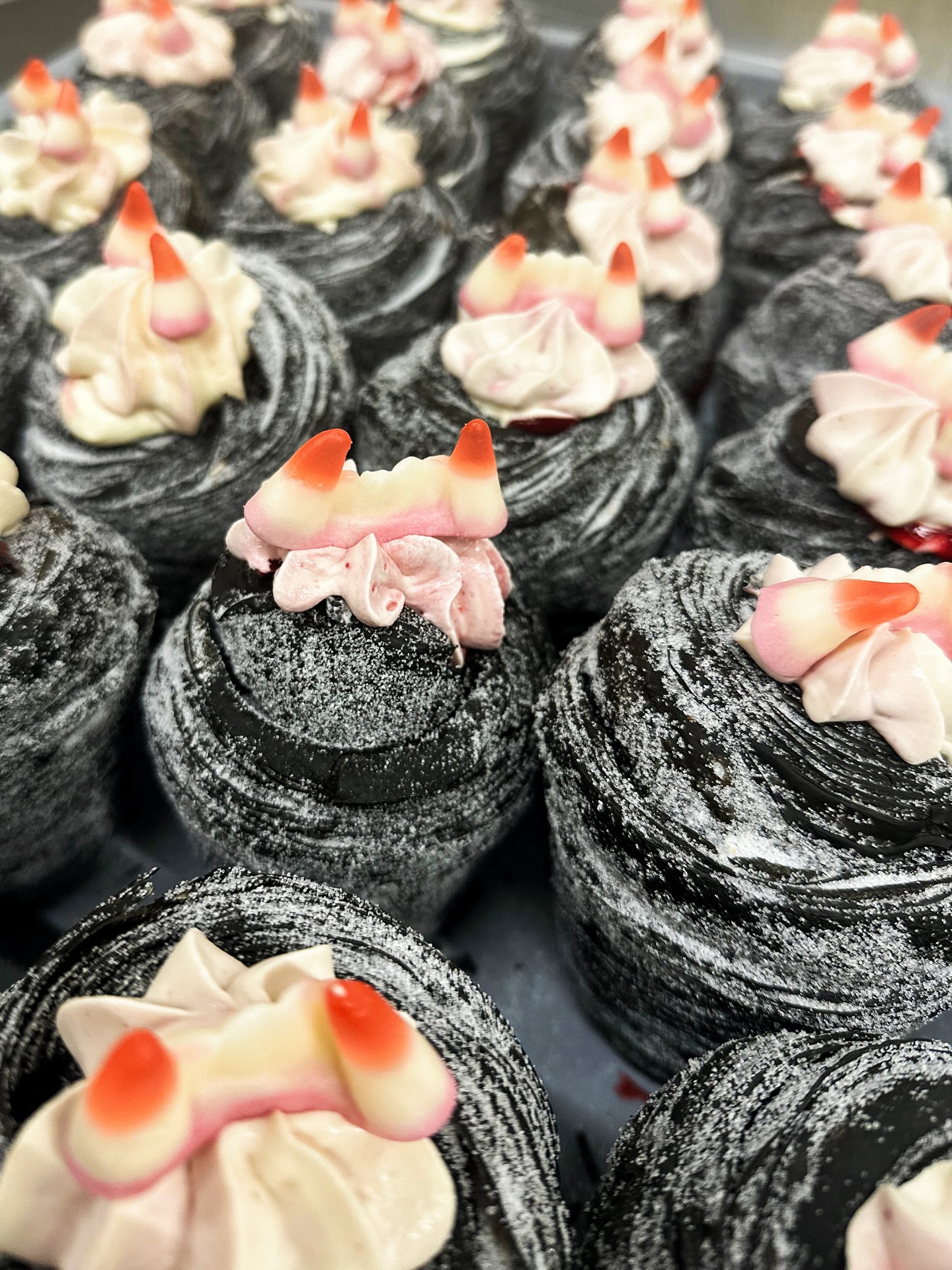 It’s not just trick or treaters that deserve something sweet! We’ve spookified two of our signature bakes by making them with black dough, and filled them with brand new flavours