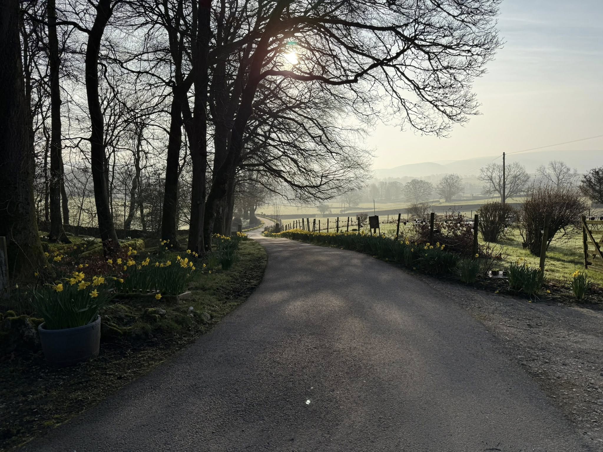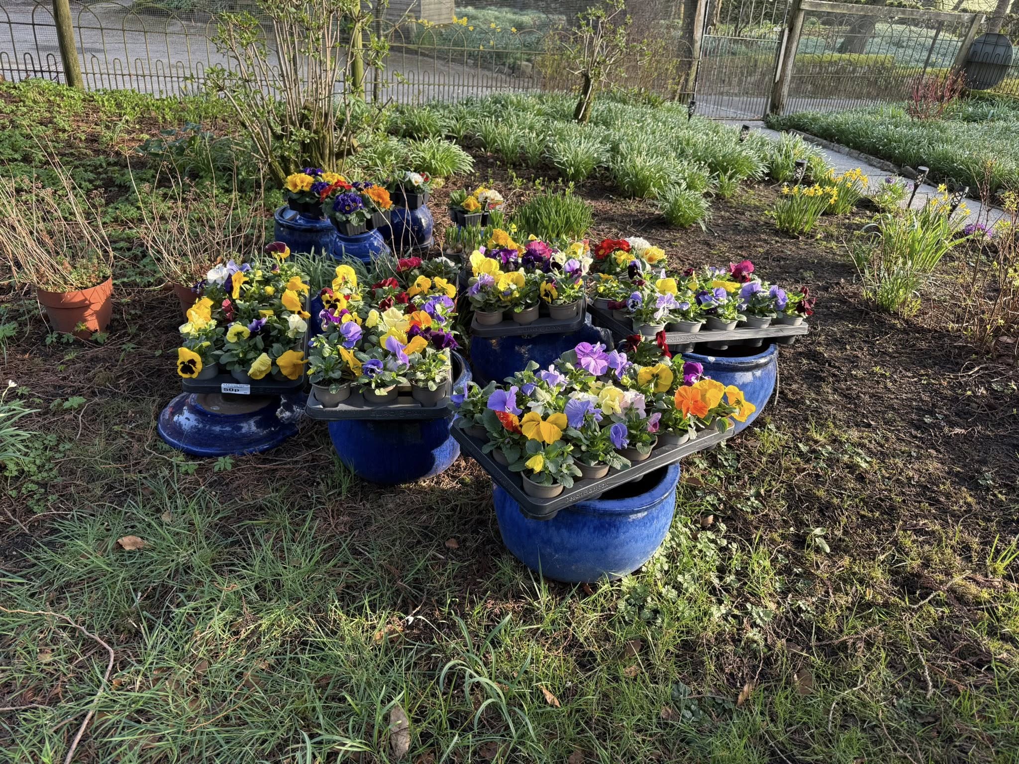 Our lovely gardener Rob is back today planting up more blue pots and how gorgeous is our driveway looking with our display of daffodils.