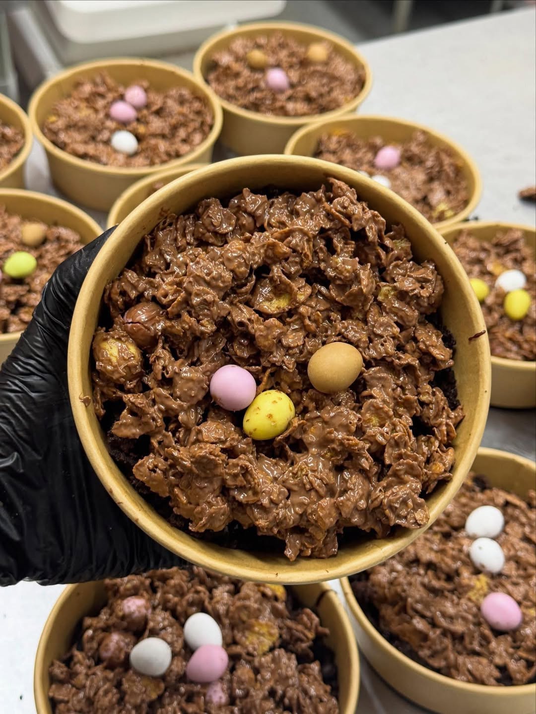 Who would like to see some of these this year. Chocolate fudge cake sponge base, with chocolate sauce drizzled on top, chocolate cornflakes piled on top with Cadburys mini eggs. A great sharing dessert. ❤️